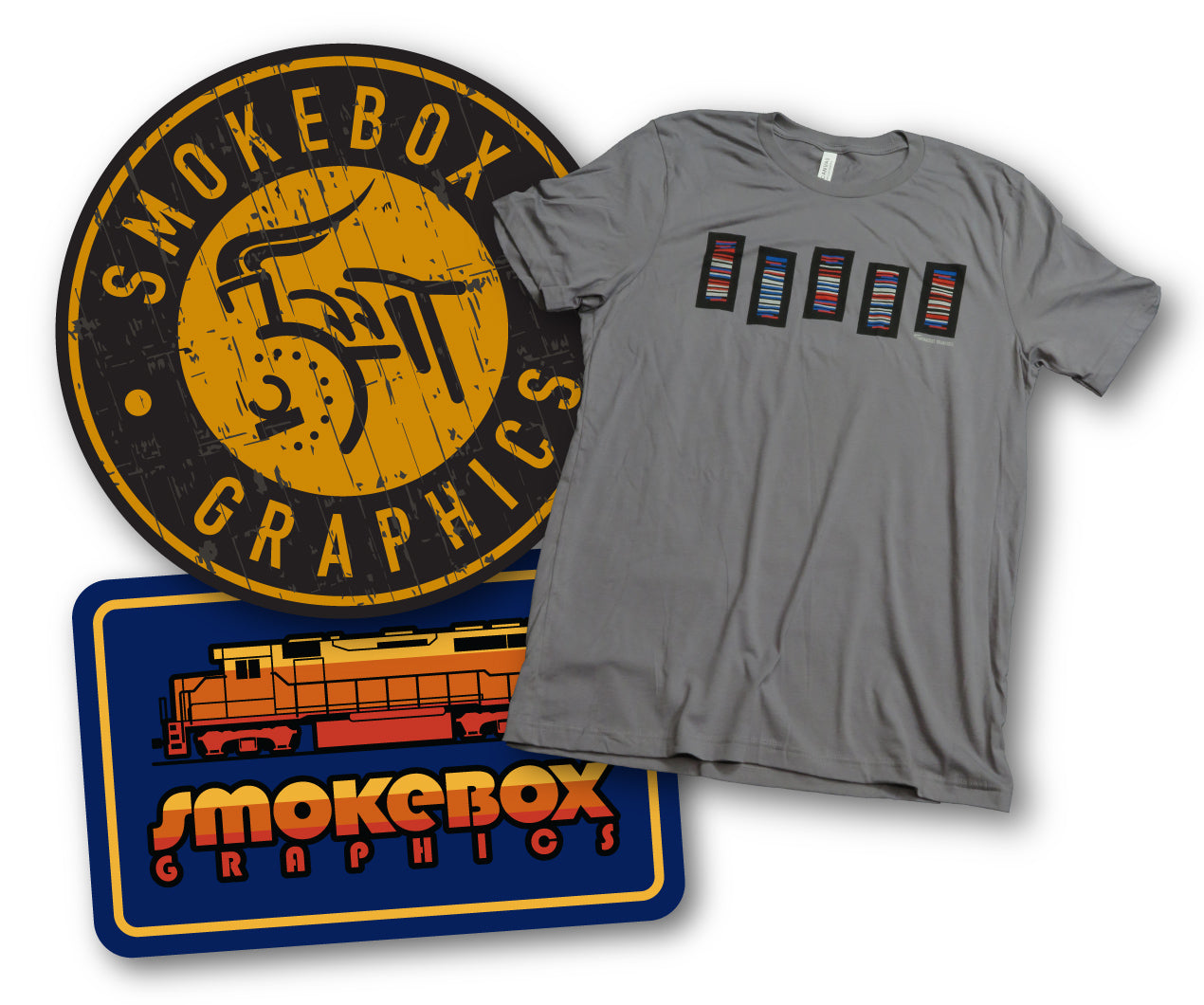 Smokebox Graphics-branded magnets, stickers, T-Shirts, and other products.