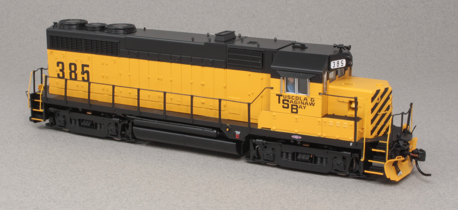 This is a very limited offering of HO Scale TSBY GP35 #385 in the 1984-era yellow and black paint. These models feature AAR-B sideframes, low nose headlight, upper Gyralight, 3-latch hood doors, and a specially-tooled Ann Arbor/DT&I-style low hood bell housing.